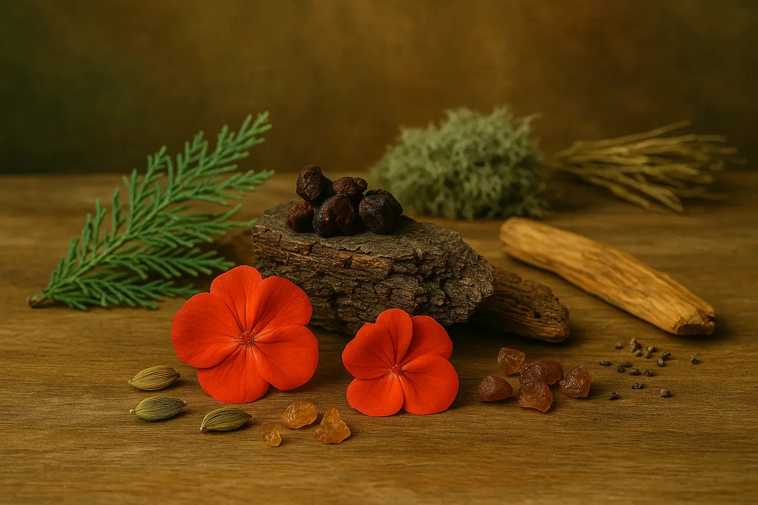 Vétiver · Ylang-ylang · Ciste · Petit grain